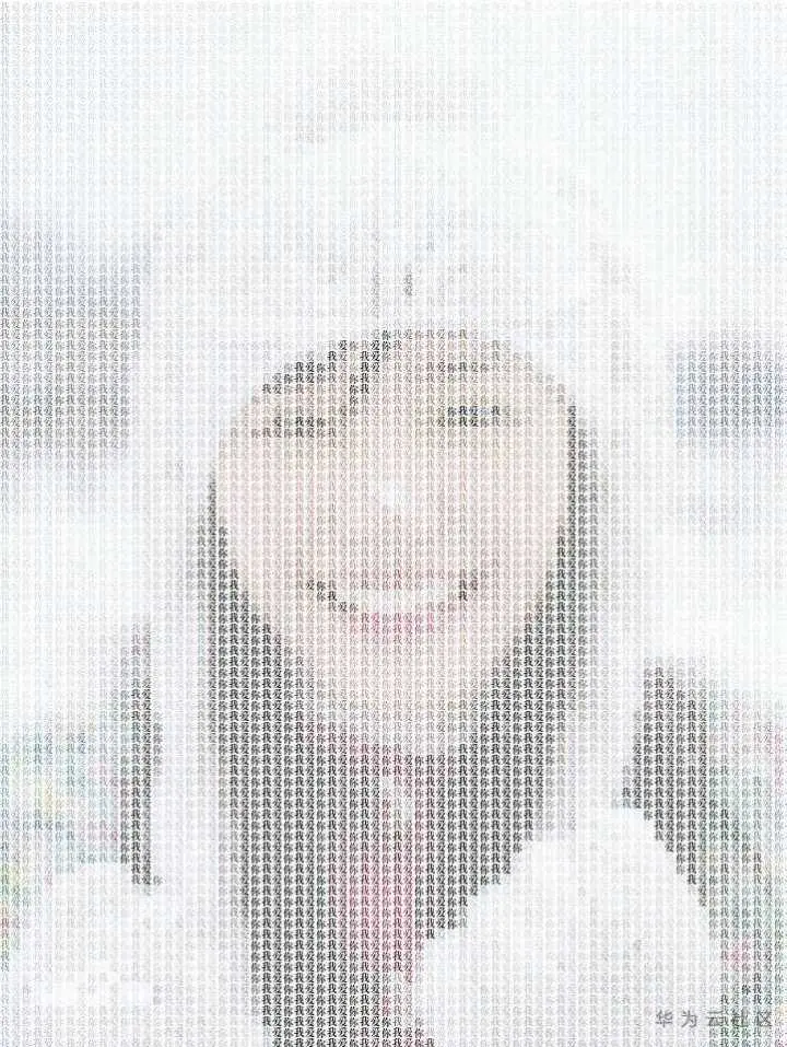 要实现这样的效果,首先需要有一张照片,提取其像素信息,然后赋给排布满文字的新图片,就能得到如上图所示的一张新图片啦!