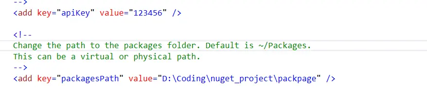 3.安装完成后修改web.config里面的 apikey 和 packagesPath
