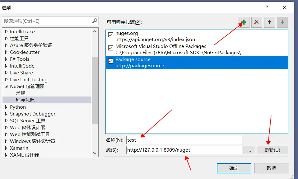 打开导航栏的 工具==》Nuget包管理器==》程序包管理器设置==》程序包源