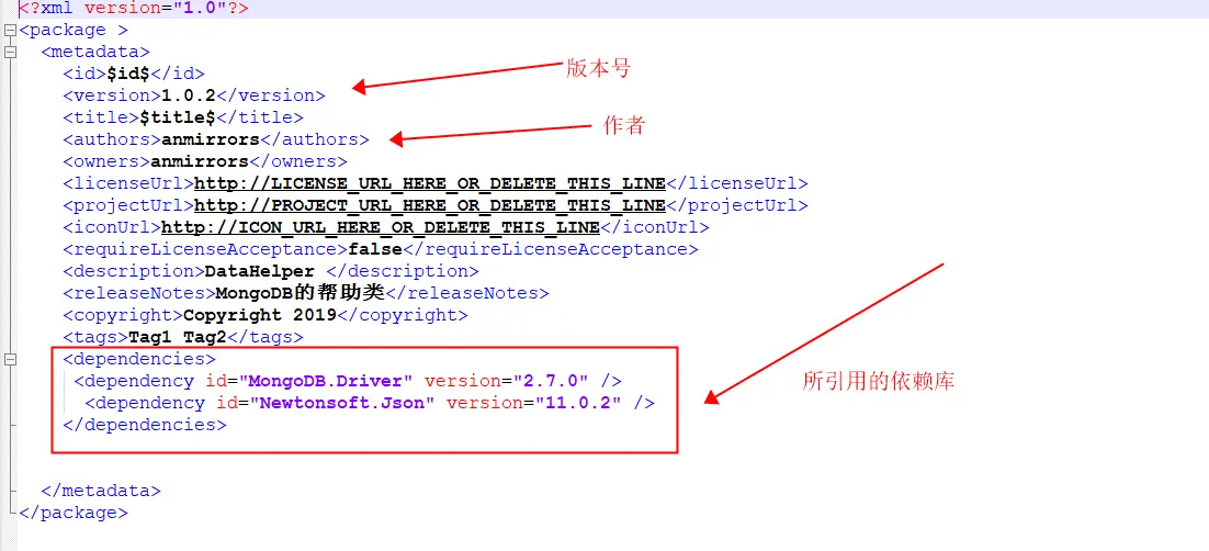 4.修改.nuspec后缀的文件内容