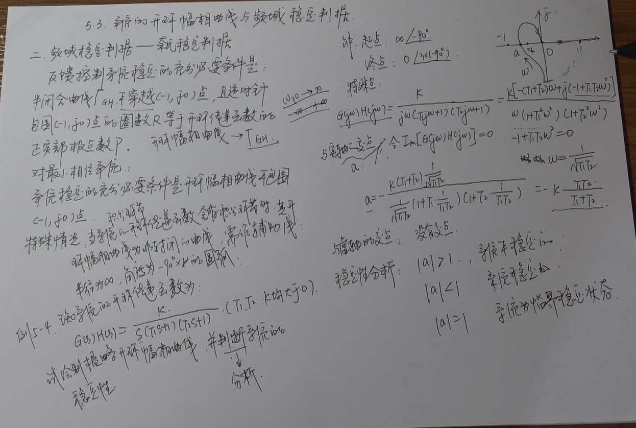 对于最小相位系统: 从w=0往w=∞走路,视线内(-1,j0)在左手边则系统稳定,在右手边则系统不稳定