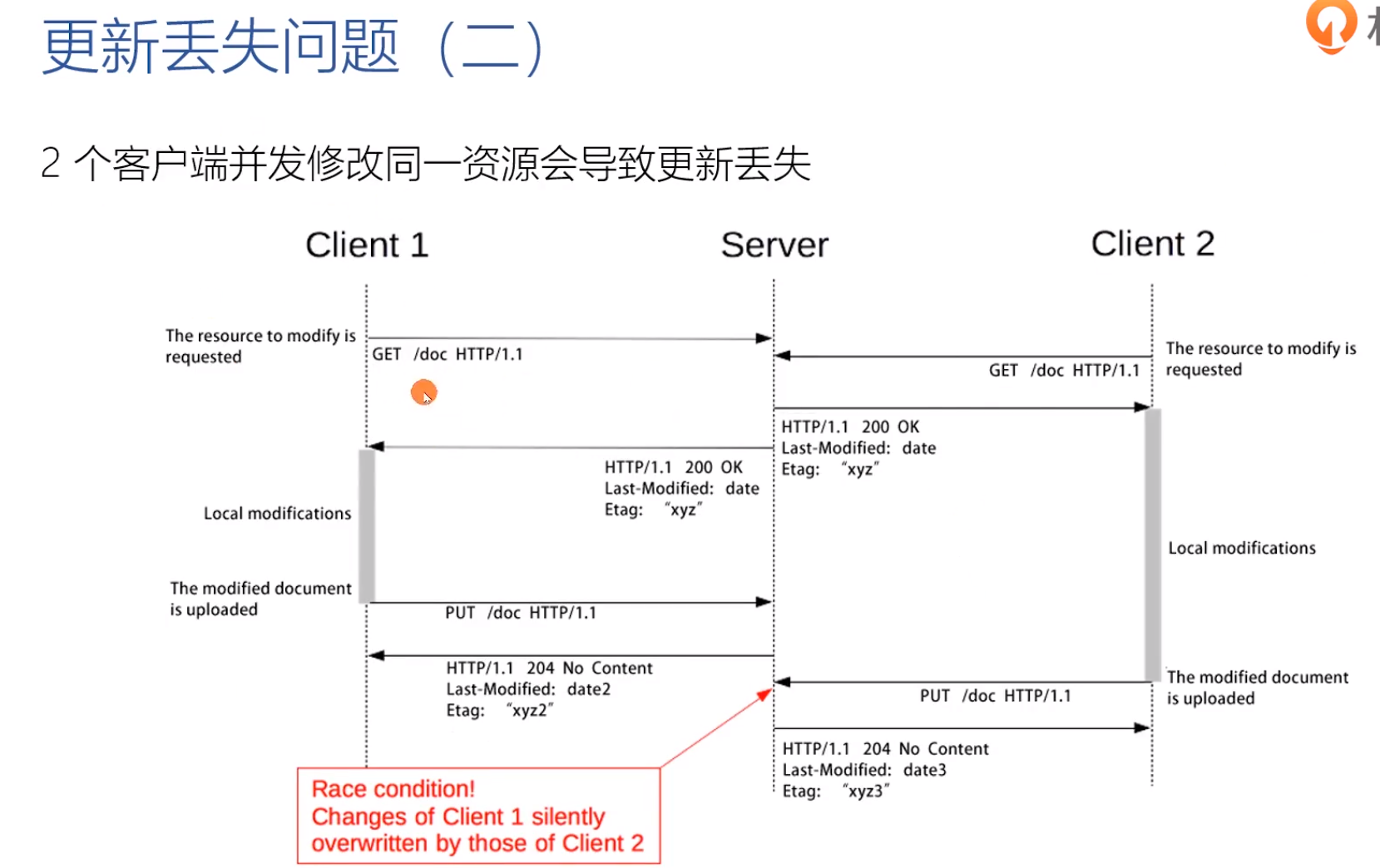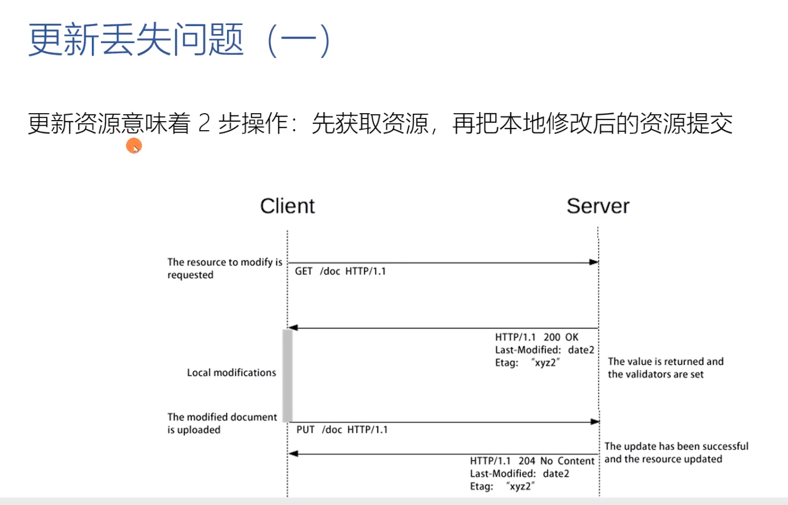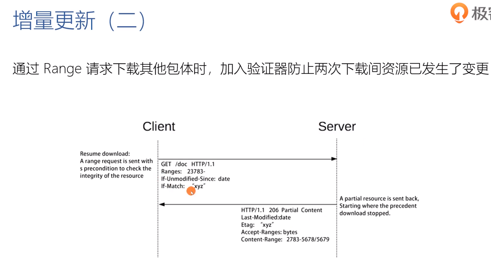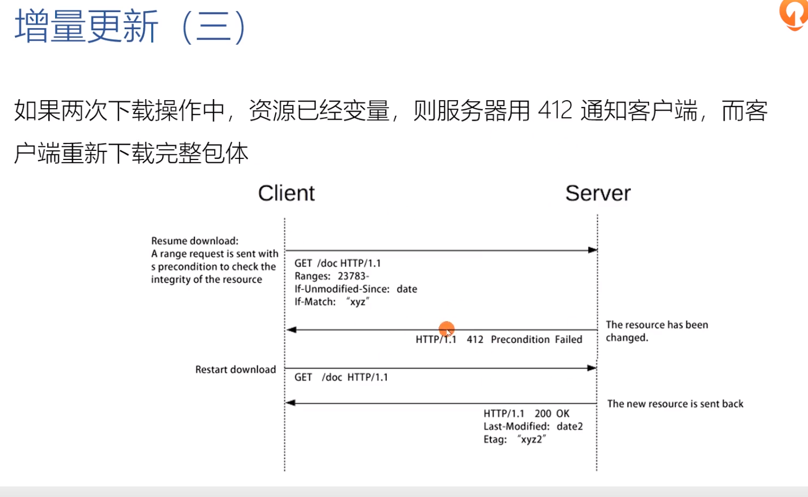 Etag与If-None-Match: 第一次请求返回ETag作为资源的标志符,第二次相同请求如果携带if-None-Match请求头服务器会对比请求头内的ETag与请求资源的ETag,如果相同说明资源没有改变,验证失败了,对于GET/HEAD方法返回304,对于能够引发服务器状态改变的方法,则返回 412。