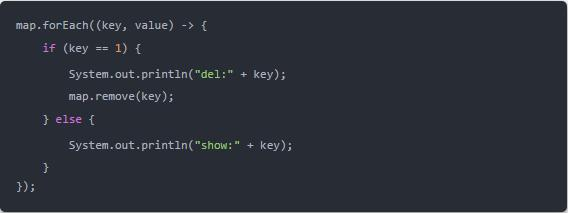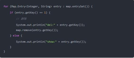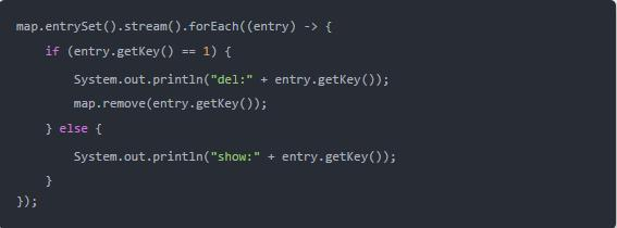 我们不能在遍历中使用集合 map.remove() 来删除数据,这是非安全的操作方式,但我们可以使用迭代器的 iterator.remove() 的方法来删除数据,这是安全的删除集合的方式。同样的我们也可以使用 Lambda 中的 removeIf 来提前删除数据,或者是使用 Stream 中的 filter 过滤掉要删除的数据进行循环,这样都是安全的,当然我们也可以在 for 循环前删除数据在遍历也是线程安全的。