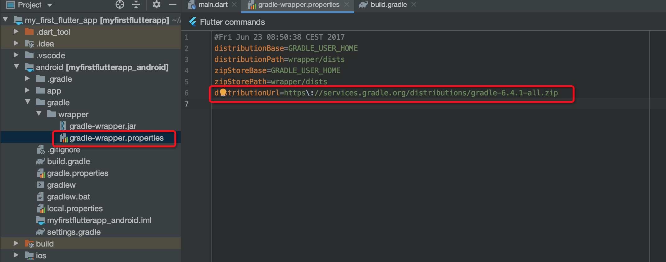 - 修改gradle-wrapper.properties文件中distributionUrl的值,原值是5.6.2,替换成6.4.1