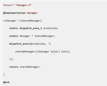 题三:简述Singleton的概念及并使用Objective C 写出相关代码。