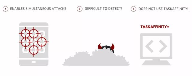 StrandHogg 2.0也可以劫持任意app,允许更大范围内的攻击,并且很难检测。StrandHogg 2.0利用的并不是安卓控制设置TaskAffinity,利用TaskAffinity虽然可以劫持安卓的多任务特征,但是也会留下痕迹。Strandhogg 2.0是通过反射执行的,允许恶意app自由地设定合法app的身份,同时可以完全隐藏。