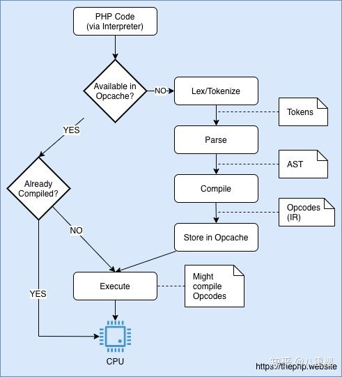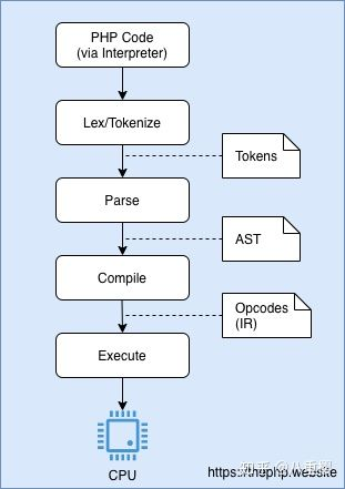 PHP 使用 Opcache 的解释流程。如果文件已经被解析,则 PHP 会为其获取缓存的 Opcodes ,而不是再次解析。