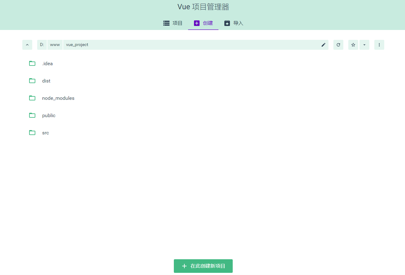 - 使用图形化界面 在命令行中输入 vue ui 会在浏览器中打开图形化界面,可以根据页面指示创建项目