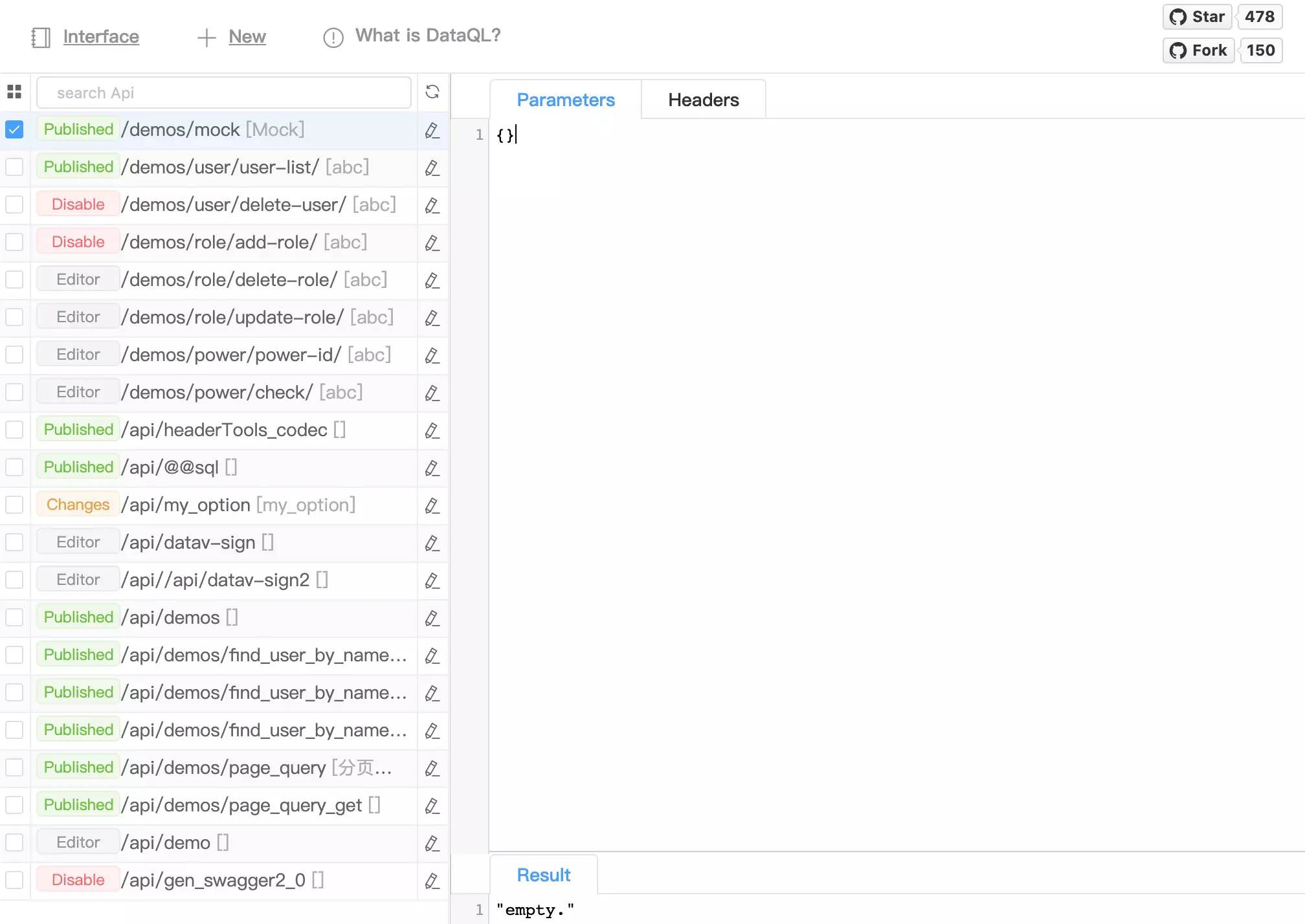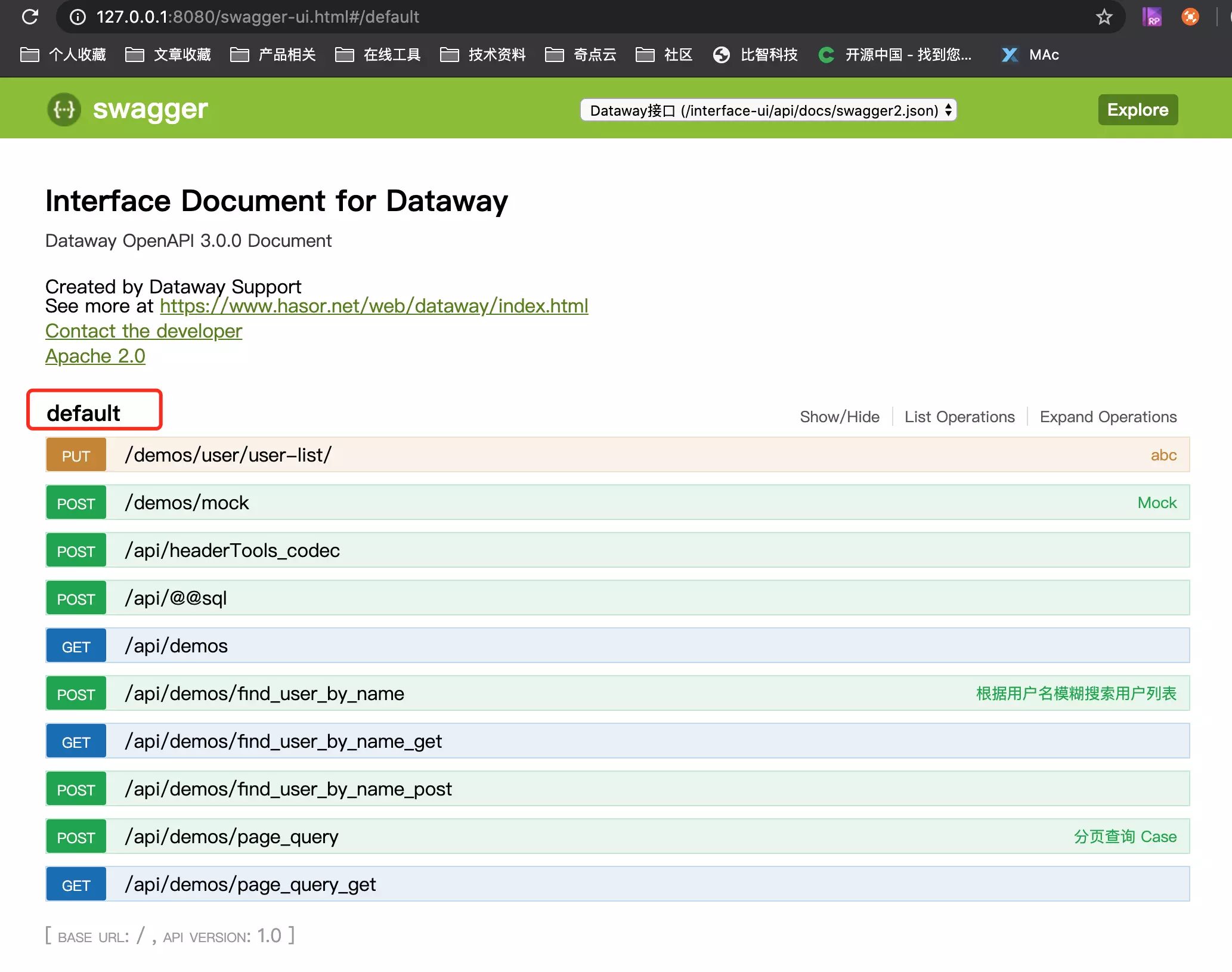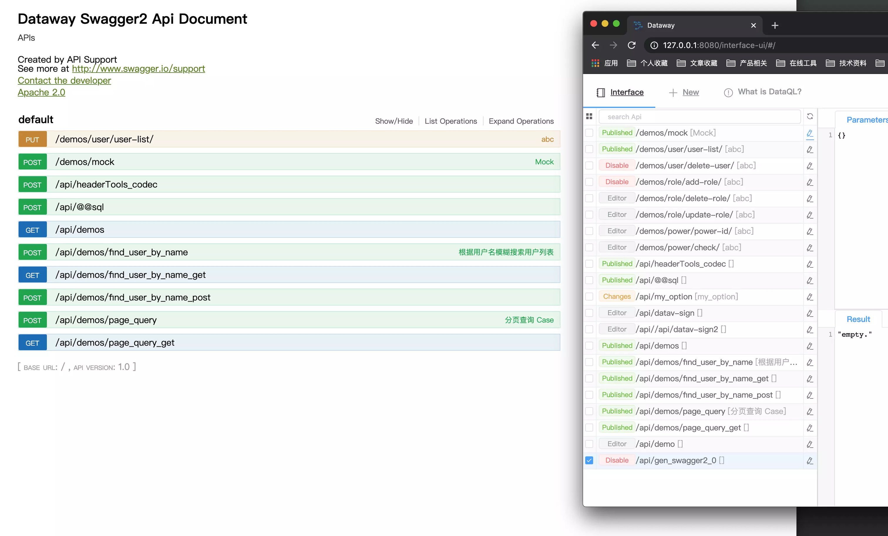 在切换到 Dataway 的UI 中对比一下是不是所有已经发布的 API 都已经在 Swagger 中展示出来了。