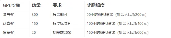 冠军:10000元GPU资源,2000元现金,颁发荣誉证书