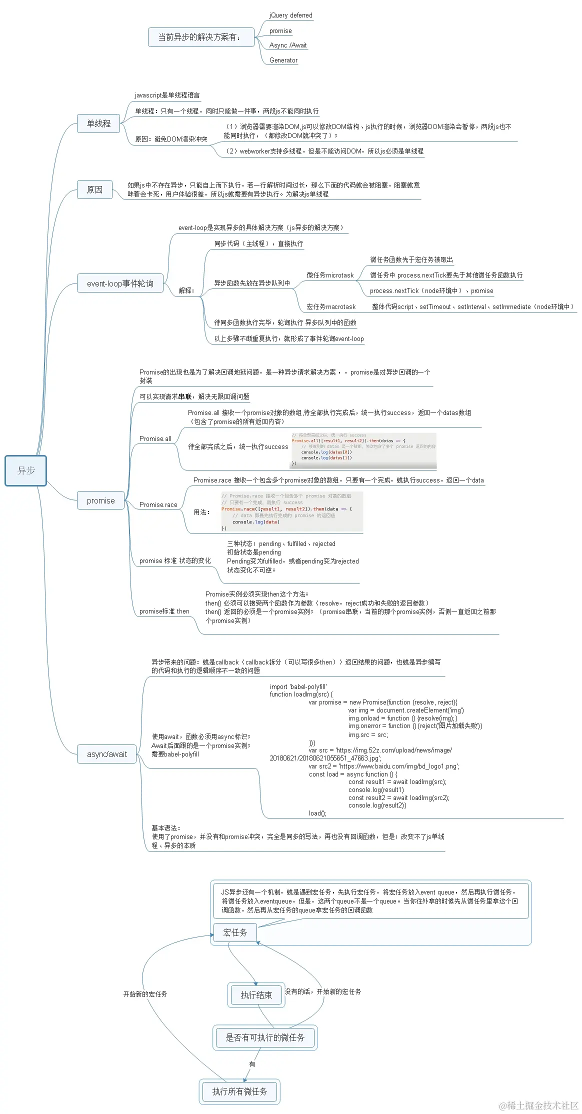 当前异步解决方案有: jQuery deferred、promise、async/await、Generator