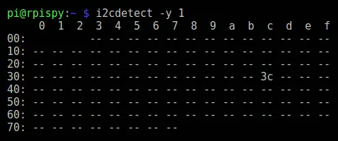 不同的模组可能得到不同的输出。这里我们的 I2C 地址就是 0x3C。如果你使用的是初代树莓派(256MB的树莓派1代B),那么需要使用下面的命令: