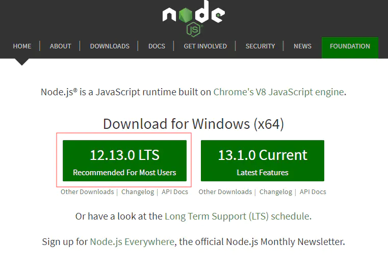 1.进入nodejs官网,选择最新的LTS版本(稳定版),为什么尽量用最新的版本呢,为了提升webpack打包效率