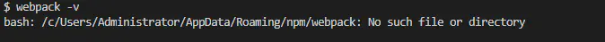 - 当我们安装好以后,再通过输入 webpack -v去查看版本是行不通的。因为当我们输入这个命令后,node会尝试在全局模块的目录中去找webpack,因为我们webpack没有安装在全局,所以是找不到的。