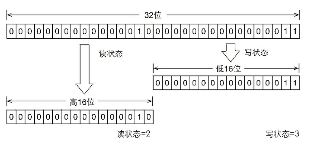 AQS 内部只有一个 state 变量,如何同时维护读状态和写状态呢? state 的高16位表示读状态,低16位表示写状态。