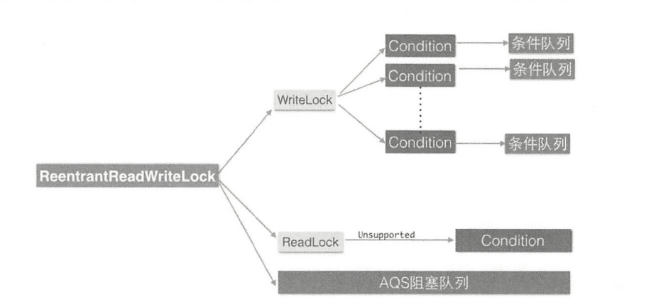 读锁的节点是共享模式,另外 写锁 和 ReentrantLock 都能实现 Condition 队列,和 AQS 原理大致类似。