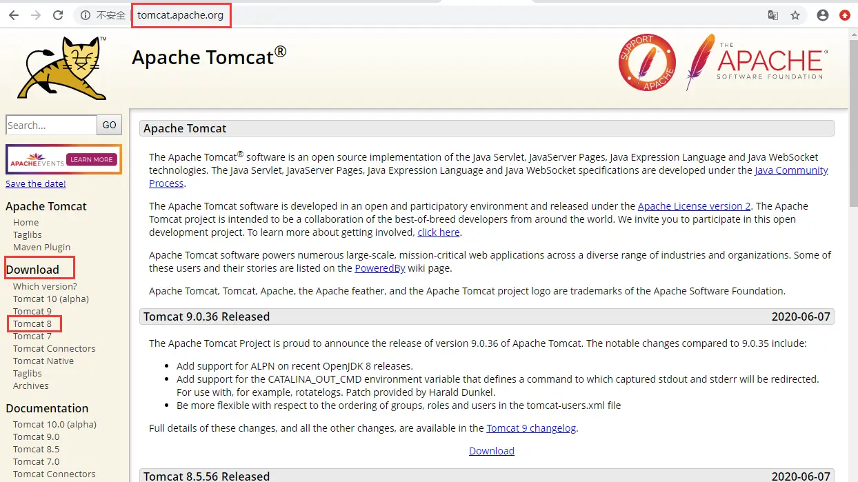 Tomcat官网地址:tomcat.apache.org/