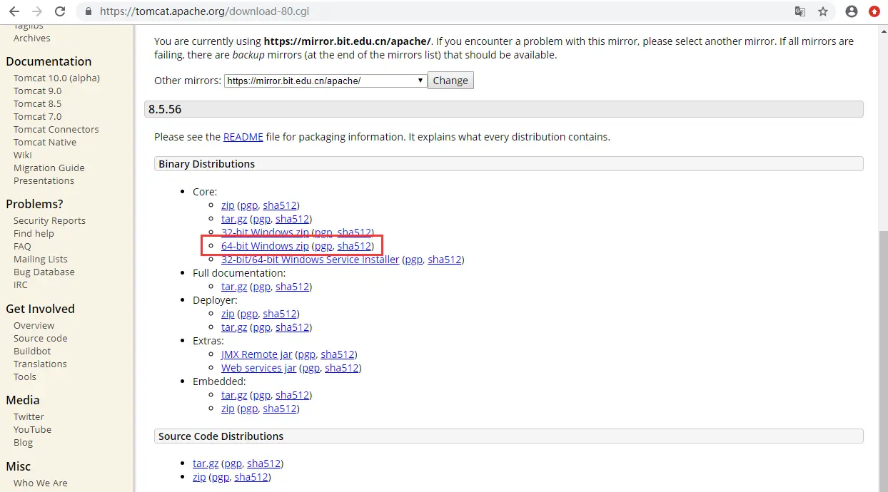 - 在地址栏上输入Tomcat官网地址,以Tomcat8.5为例进行下载安装。
