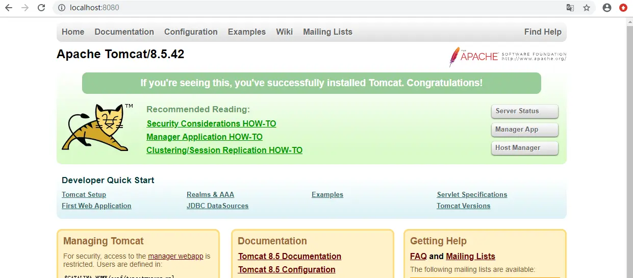 - 打开浏览器输入 localhost:8080,能显示如下界面就完成啦。