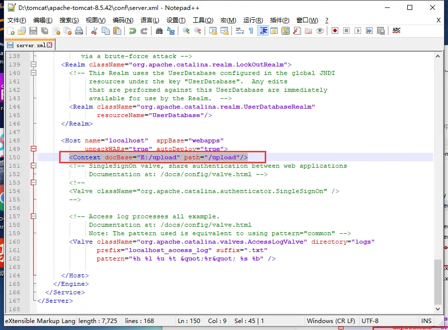 <Context docBase="E:/zdxm/upload" path="/upload"/> # 上传文件地址