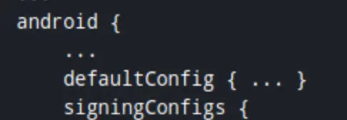 - 签名配置添加到应用程序的Gradle配置,编辑android/app/build.gradle添加以下代码