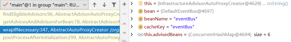 顺着方法调用栈往上爬,找到下一个 doCreateBean ,发现确实有创建 eventBus 的部分: