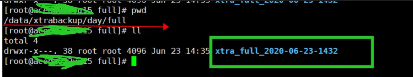 - innobackupex --apply-log --redo-only xtra_full_2020-06-23-1432/