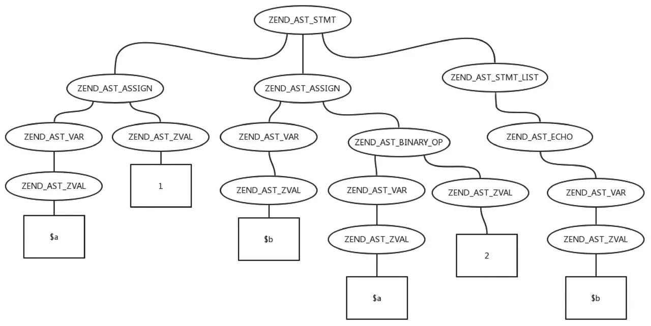 在PHP 7中,进行词法和语法分析,生成AST,然后编译成opcode及被执行均由Zend虚拟机完成。第10章中,我们已经具体介绍了AST的生成过程,本章将详细阐述AST编译成opcode的过程、opcode被执行的过程,以及Zend虚拟机的实现原理及关键数据结构。