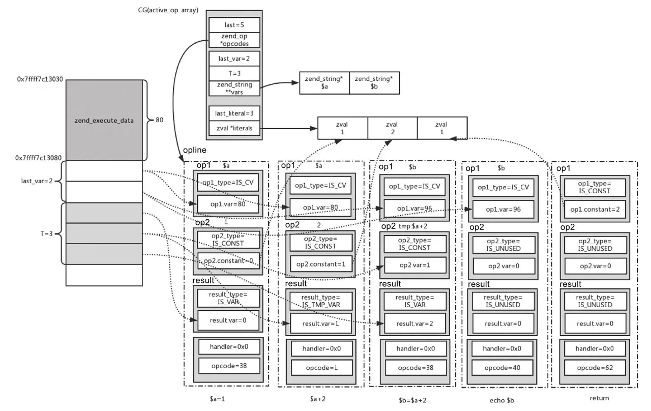 到此,我们详细阐述了AST被编译成指令集,以及指令集被执行的过程,相信读者对Zend虚拟机有了一定了解。
