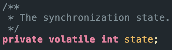 Semaphore里,它表示“剩余的许可证数量”;而在CountDownLatch里,它表示“还需要倒数的数量”;在ReentrantLock里,它用来表示“锁的占有情况”,当state为0的时候,标识Lock不被如何线程所占有。 - state是被volatile修饰的,会被并发的修改,所以所有修改的方法都需要保证线程安全,比如getState、setState以及compareAndSetState操作来读取和更新这个状态。