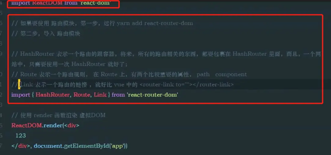 - HashRouter:是一个路由的跟容器,一个应用程序中,一般只需要唯一的一个HashRouter容器即可!将来,所有的Route和Link都要在HashRouter中进行使用