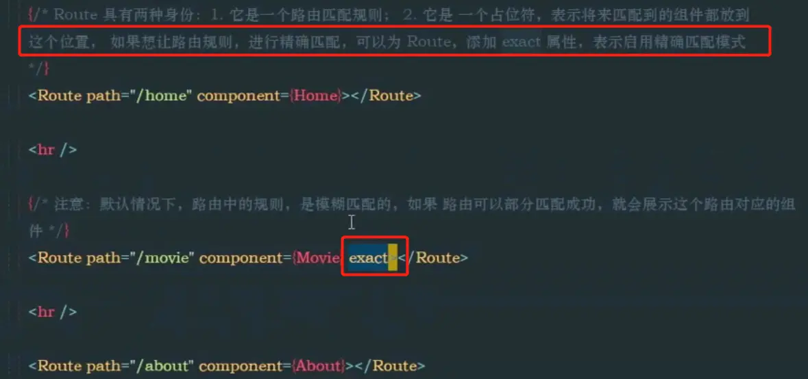 - 注意:react-router中的路由匹配,是进行模糊匹配的!可以通过