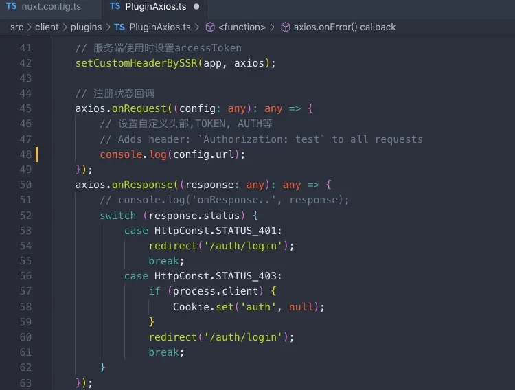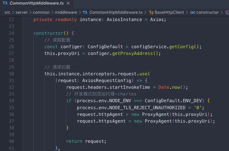 服务端则通过中间件形式,引入axios,注册拦截器,charles抓包代理,原理同客户端实现大同小异。