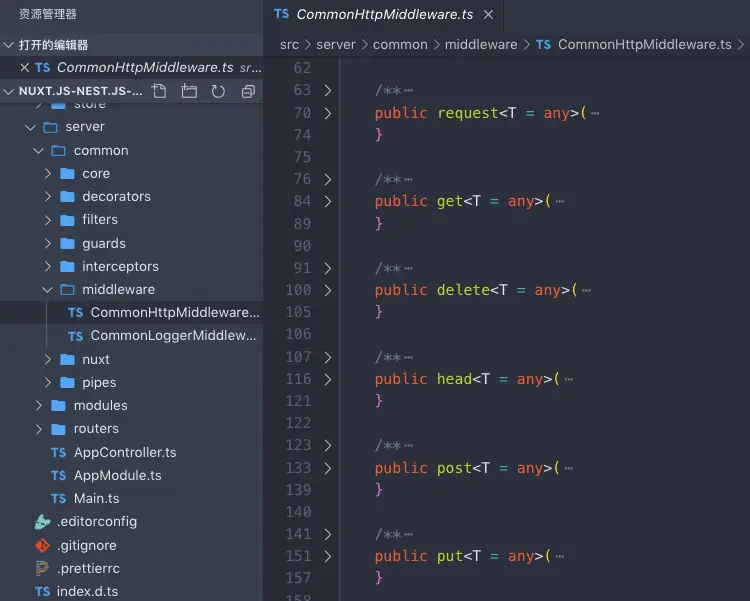 与客户端axios实现区别是,因为作了服务端中转,所以需要重写实现所有RESTful系列方法。