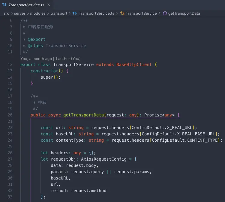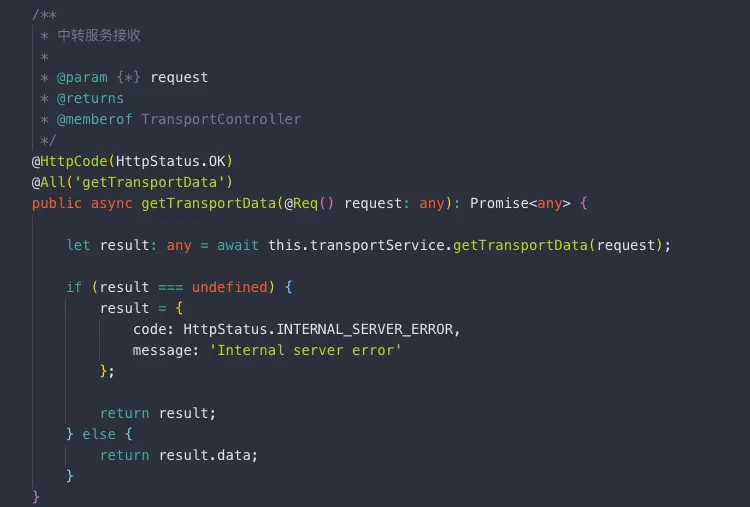 建立中转专用模块: 中转模块服务继承自ServiceTransport实现: 对外暴露controller服务,通过/api/trasport/getTransportData方式访问: 注册模块: 从截图可以比较看出,中转与非中转服务调用,对客户端来说区别不大,主要取决于Service类继承的类是否为TransportService,而TransportService则又继承自BaseService只不过是重写了底层实现。