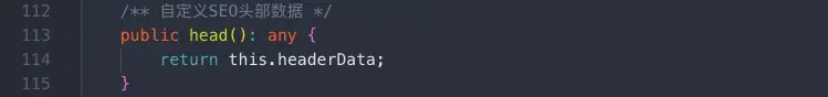 更进一步,如果head()函数中定义的数据是从服务端API接口中获取,那么需要定义一个类成员变量,然后由head()方法返回。 在asyncData()调用时,返回的headData,会赋值到当前成员this.headerData中,在页面渲染时将可达到动态更改TDK值的目的。 -