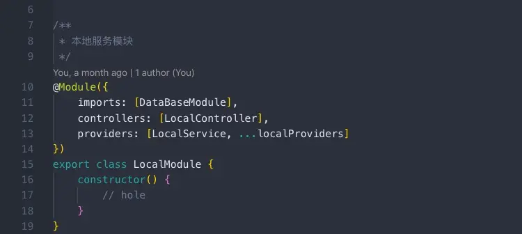 1.建立LocalModule,LocalModule再导入DataBaseModule 2.DataBaseModule中通过provider和exports提供并导出公共服务
