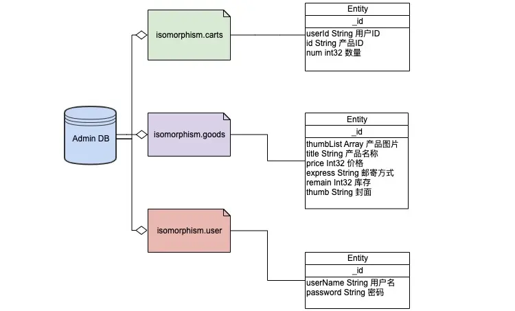 在本示例中,分别创建了 购物车、产品、用户等文结构。 -