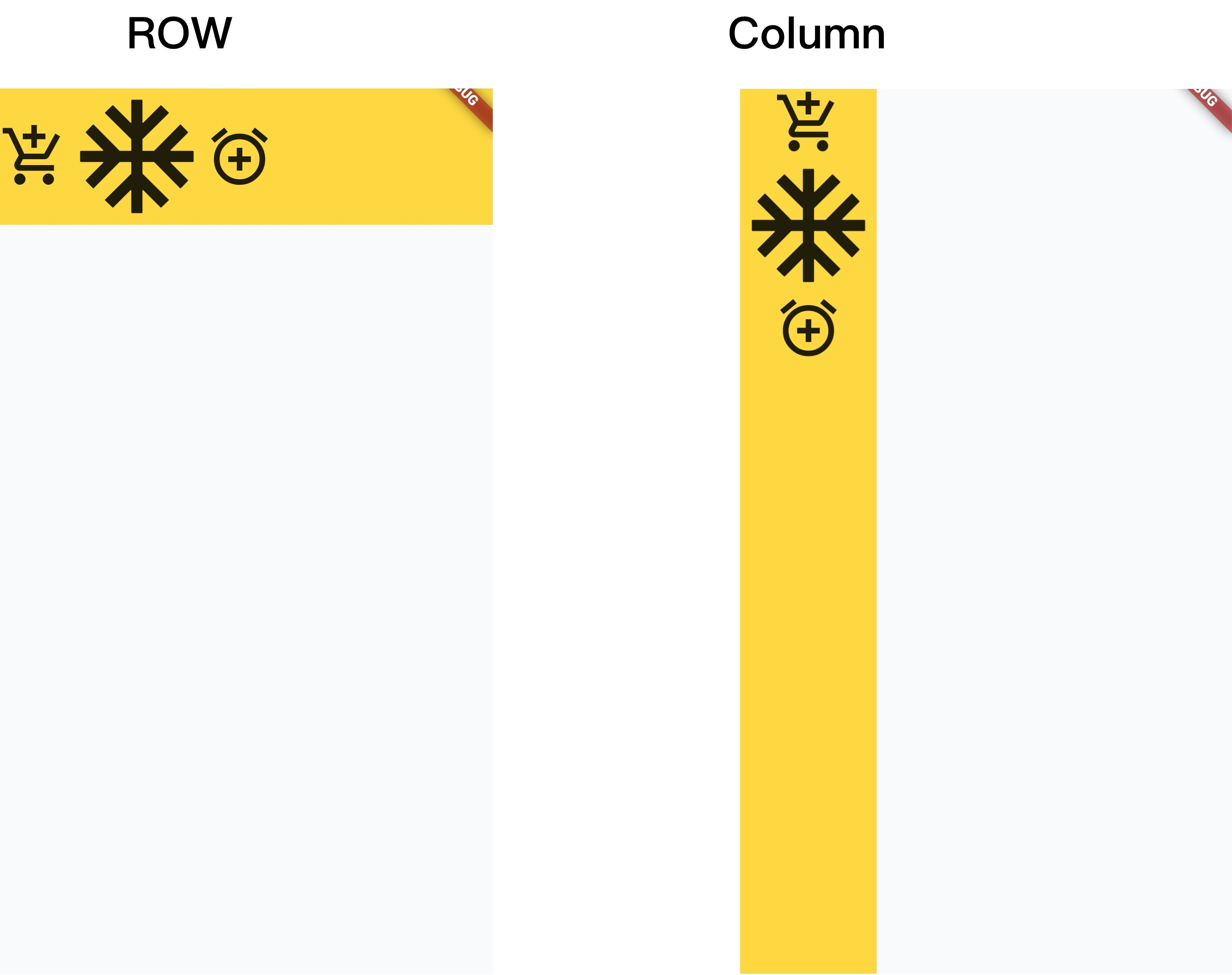 顺便说下crossAxisAlignment,交叉轴的对齐方式,即Row的话,在y轴的对齐方式,Cloumn的话,在x轴的对齐方式