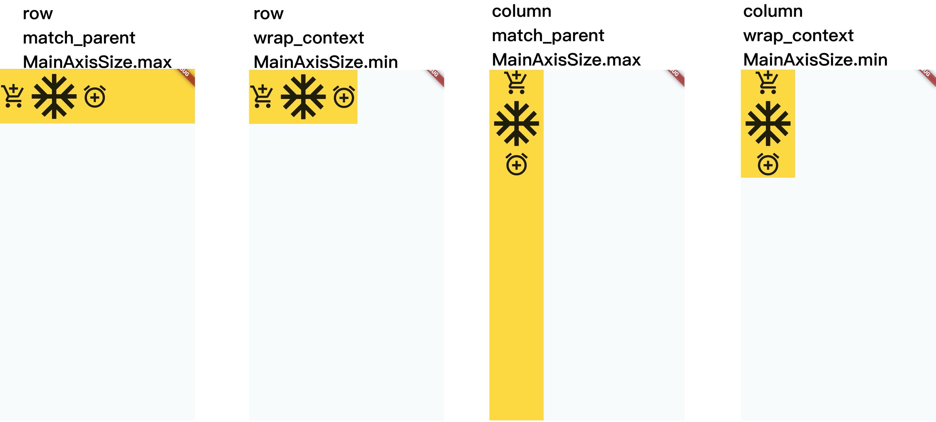 在flutter中使用MainAxisSize,即主轴对齐方式。match_parent、wrap_content分别对应max、min