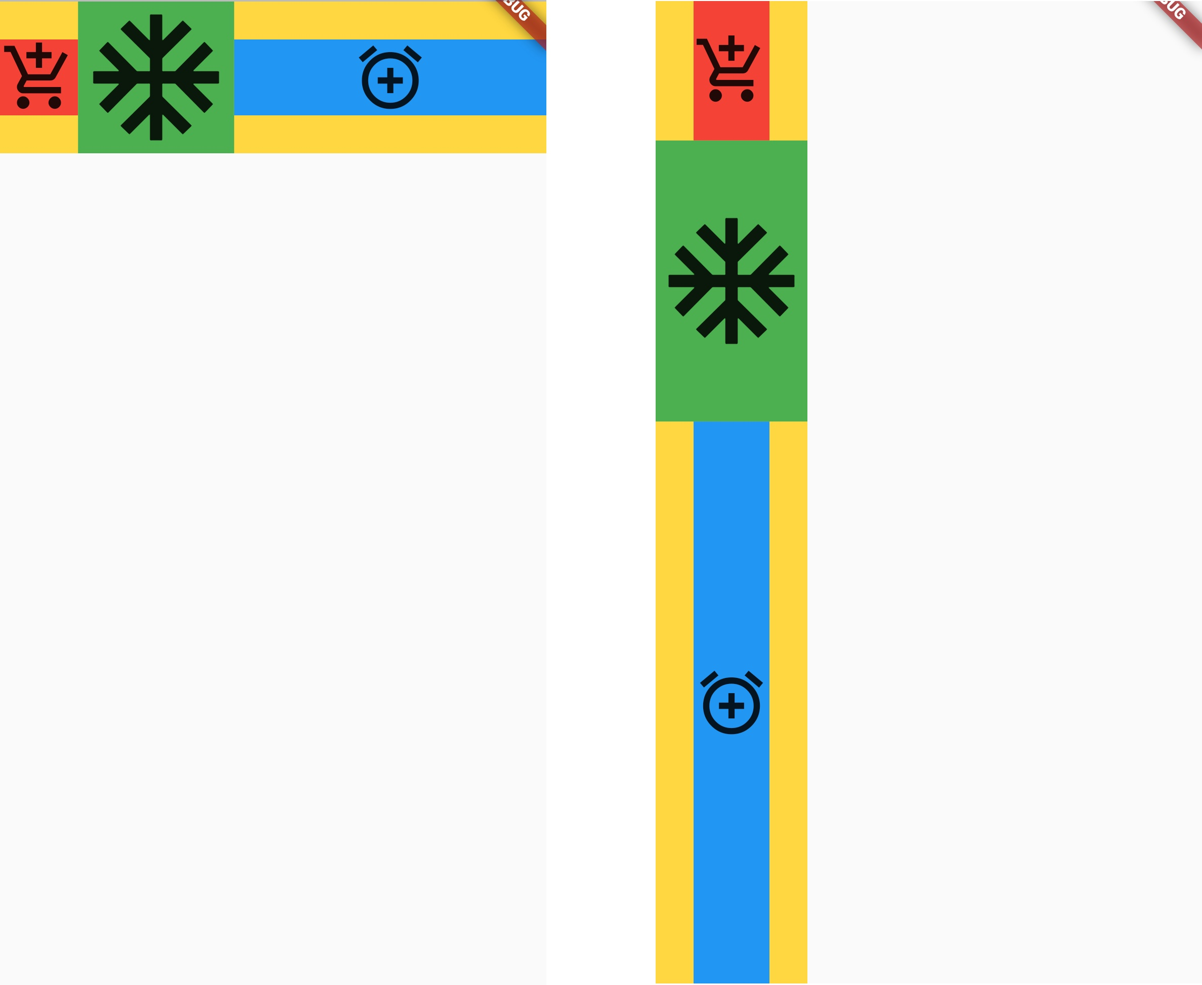 LinearLayout的android:orientation="horizontal"和android:orientation="vertical"分别对应Flutter的Row(横向布局)和Column(纵向布局)