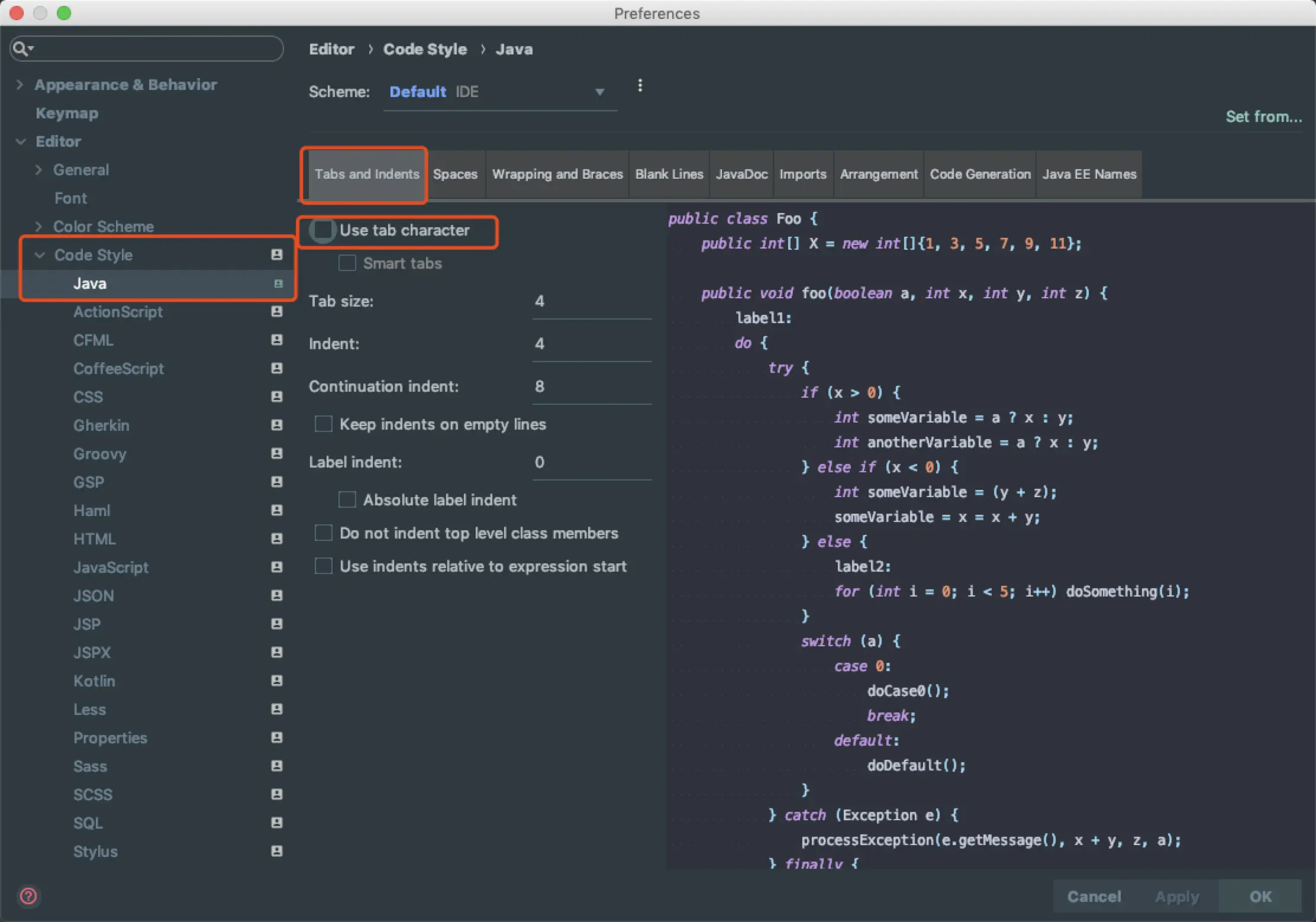 右边的Use tab character不要选,然后indent设置为4,代表按一个tab为4个空格,并且自动整理格式也是4个空格一缩进