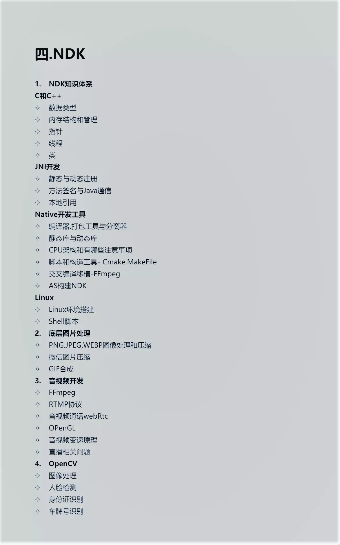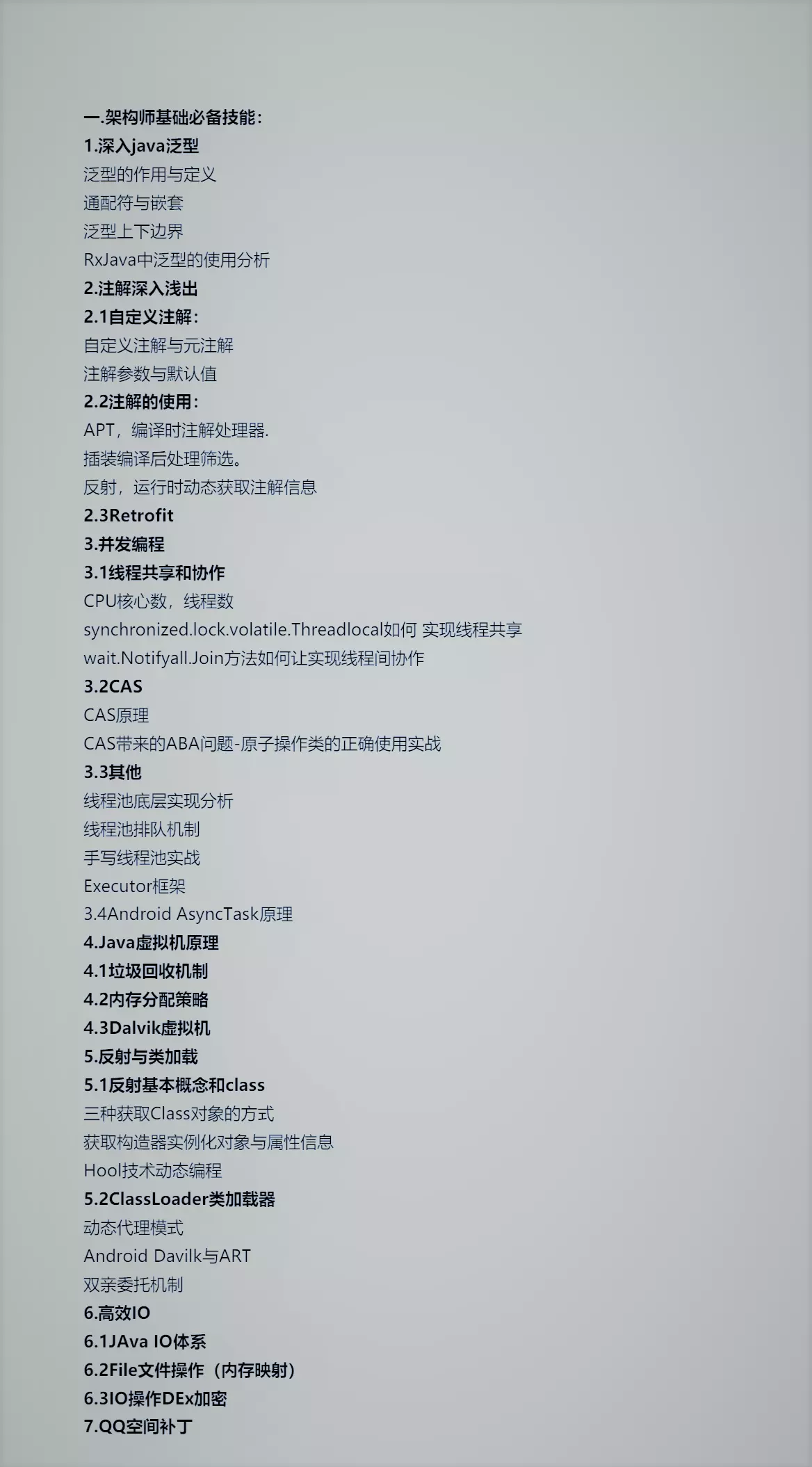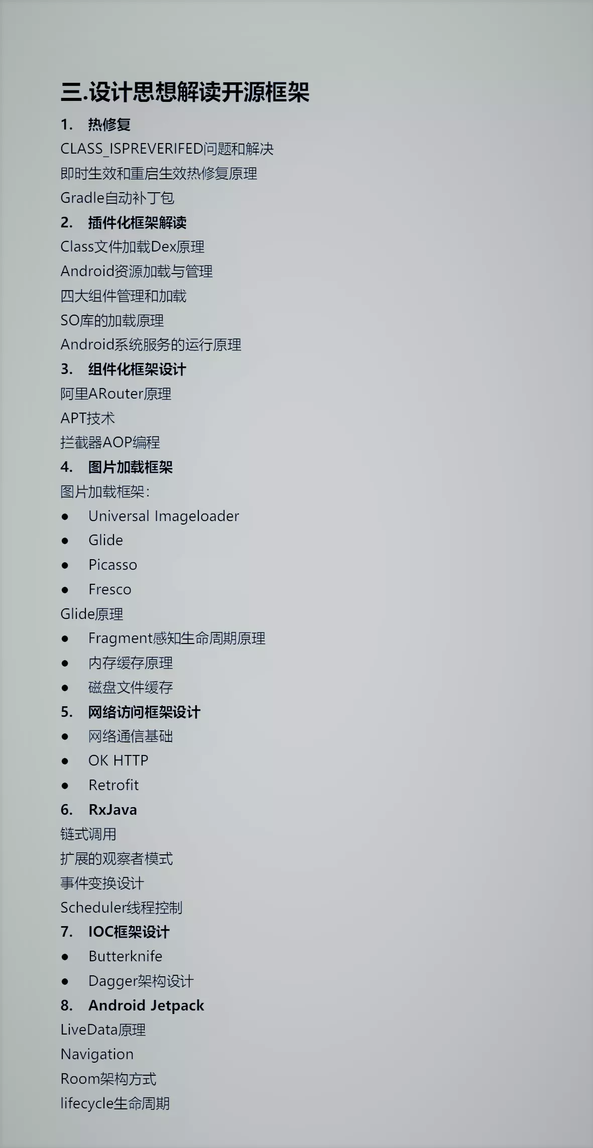 由于面的Android岗位,需要准备一些Java和Android方面的知识,有很多的文章都会去介绍怎么去复习基础的知识或者进阶知识,或者是阅读一些经典的面试数据。大家可以根据网上的文章和一些数据梳理一个自己的知识体系,将一个一个知识点形成点再到面,这样能更加深刻的理解,而且有自己的侧重点,我就列举一下我的准备的方向: