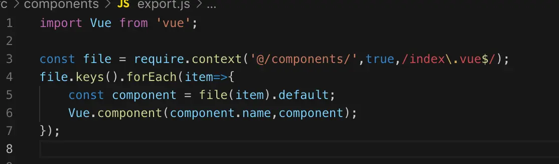 现在只用6行代码, 就帮我们完成了全局组件的自动注册 , componets文件下的组件自动查找。再也不用我们一个个的improt了 。代码是不是一下子变得简洁不少啦。