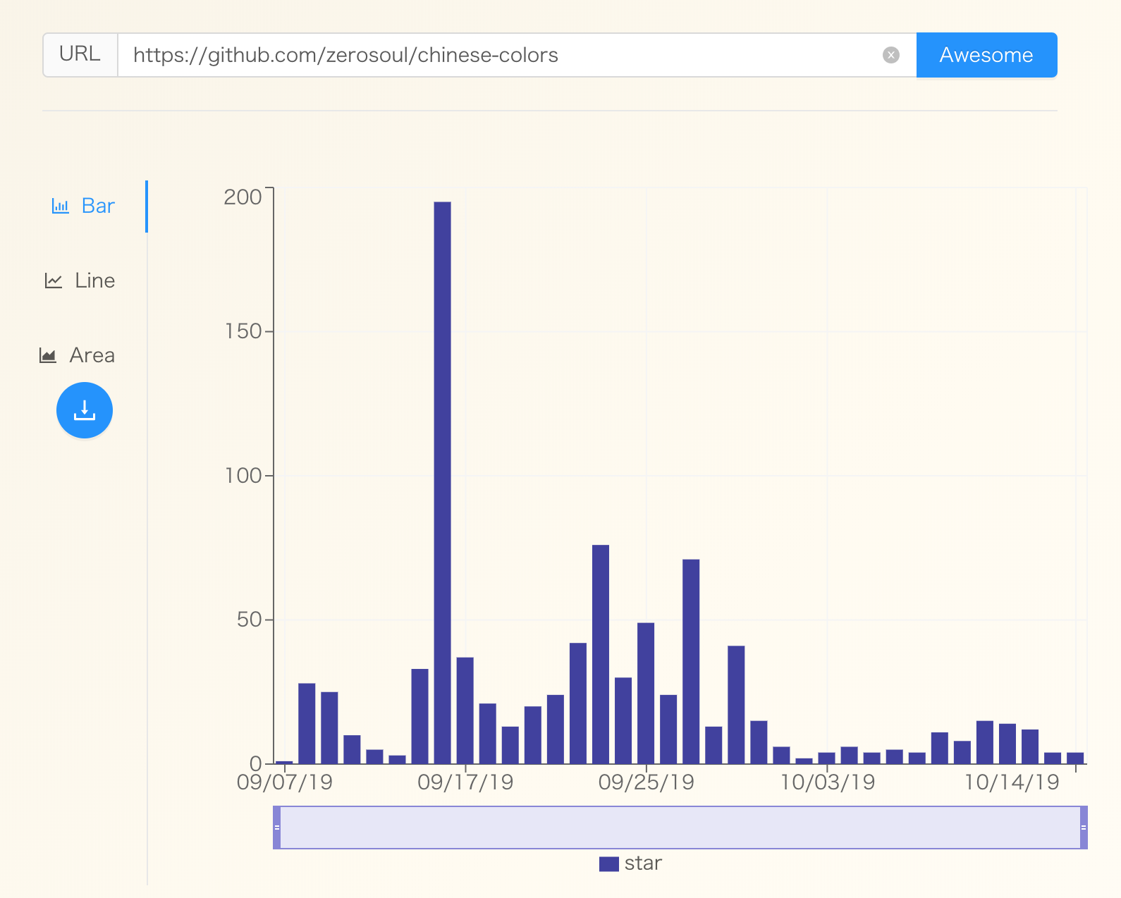 GitHub 目前不能统计查看一个仓库每日新增多少 star,找了几个第三方工具,也没有这样的功能。为了满足我的小需求,这两天做了个小工具,输入仓库地址,就可以方便地以图表方式展现出来,还可以生成并下载图片。