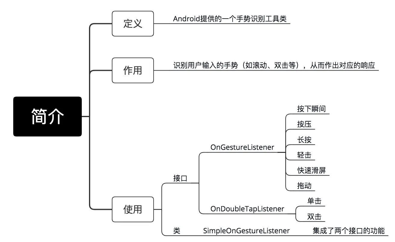 // 3. GestureDetector gestureDetector=new GestureDetector(Context context,GestureDetector.SimpleOnGestureListener listener);