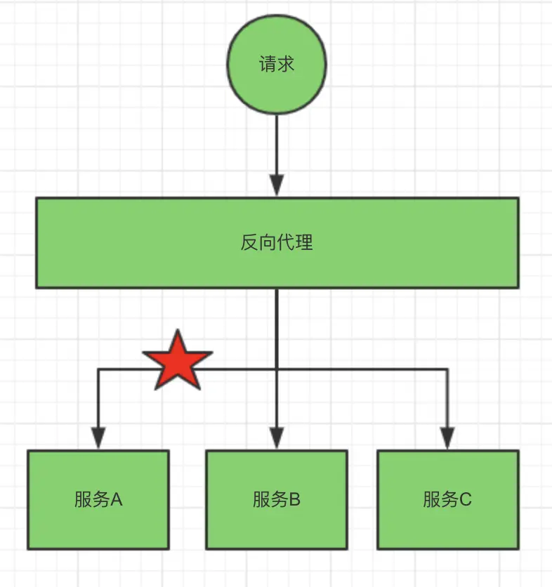 如上图服务A可能由于网络原因导致不可用,但是B、C还是可以继续服务的,但是在反向代理那个位置发生了故障那系统都不可用了,它不是高可用的。