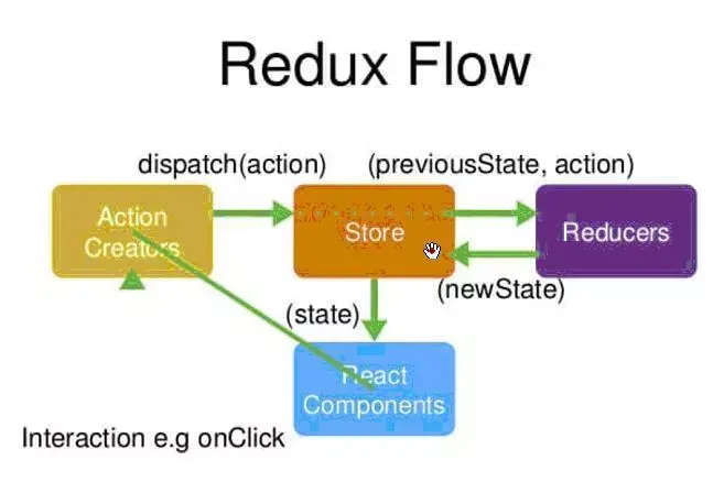 - 组件产生用户操作,调用actionCreator的方法创建一个action,利用store.dispatch方法传递给reducer