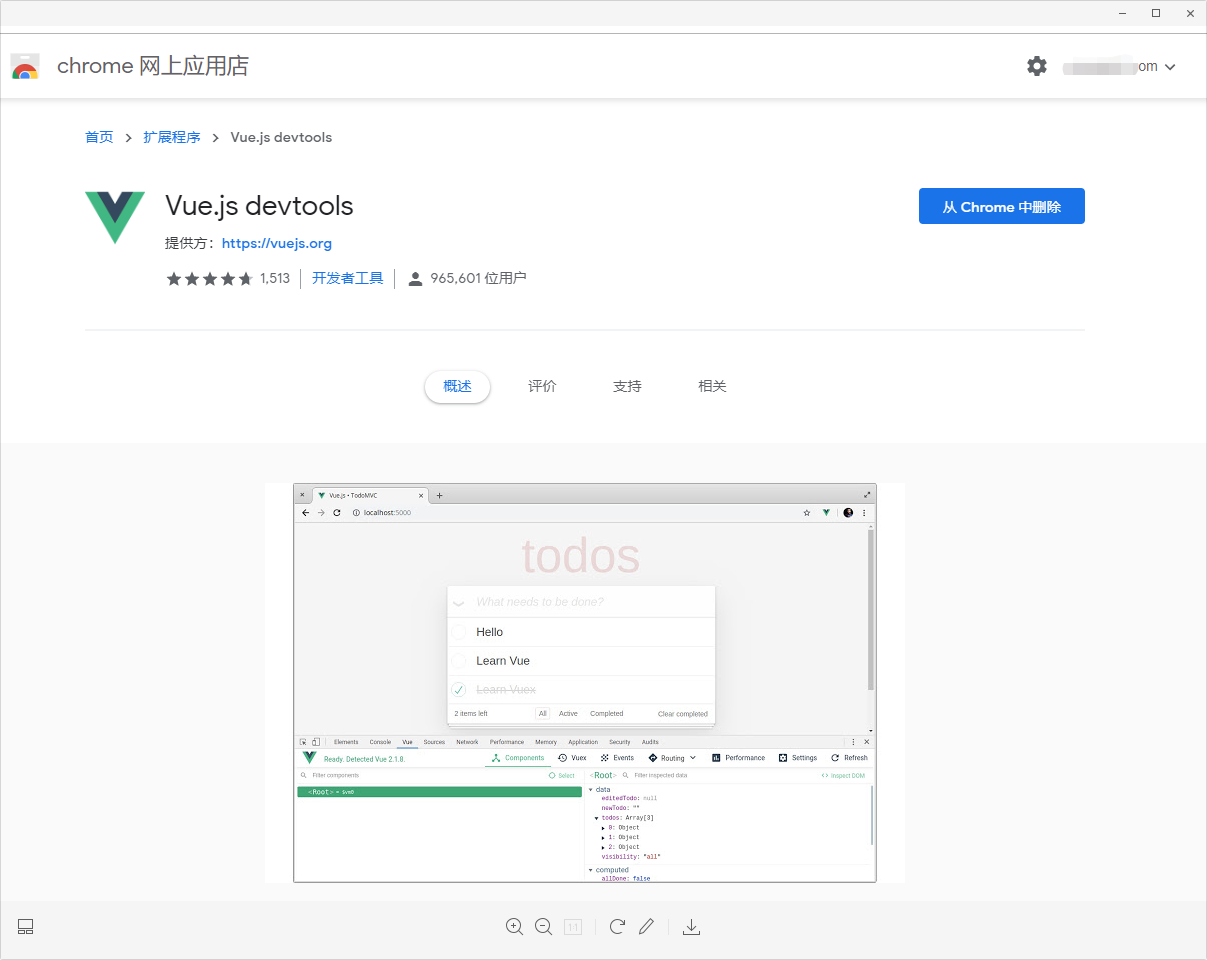 vue.js devtools 直接在谷歌应用商店安装