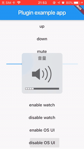 然后简单写几个按钮,在 onPressed 中调用 flutter_volume.dart 中的API 就可以完整插件的示例 App。